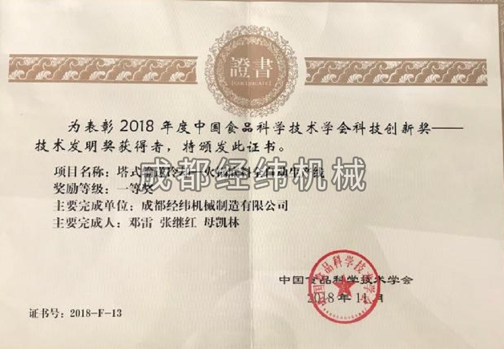 公司已通過了ISO9001質(zhì)量管理體系認(rèn)證,榮獲“中國食品科學(xué)技術(shù)學(xué)會推薦產(chǎn)品”,被認(rèn)定為“高新技術(shù)企業(yè)”,歷年來均被評為“納稅大戶”,并擁有多項專利技術(shù)。